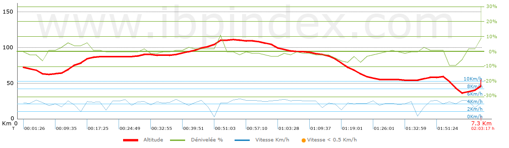 Parcours de 7.3 km pour environ 2.5 H de marche avec pauses.